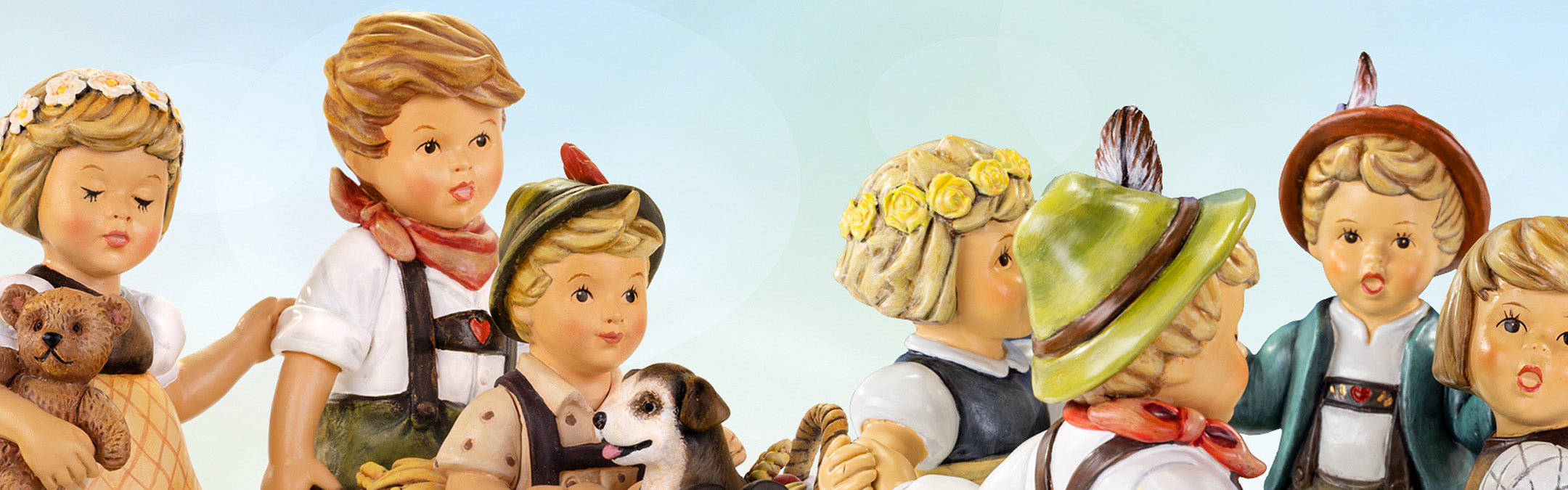 Ab dem Jahre 1935 begann die unvergleichliche Erfolgsgeschichte der bezaubernden Kinderfiguren, wie zum Beispiel dem Geigerlein (Hum 2), dem Wanderbub (Hum 7), oder der Gänseliesl (Hum 47). Bis zum heutigen Tage wurden über 1000 unterschiedliche Hummel Figurenmodelle entwickelt, die ausschließlich in Deutschland gefertigt werden. Neben den original M.I. Hummelfiguren umfasst das Sortiment auch M.I. Hummel Christbaumornamente, M.I. Hummel Sammelteller, M.I. Hummel Dosen, M.I. Hummel Lampen oder M.I. Hummel Kerzenhalter.